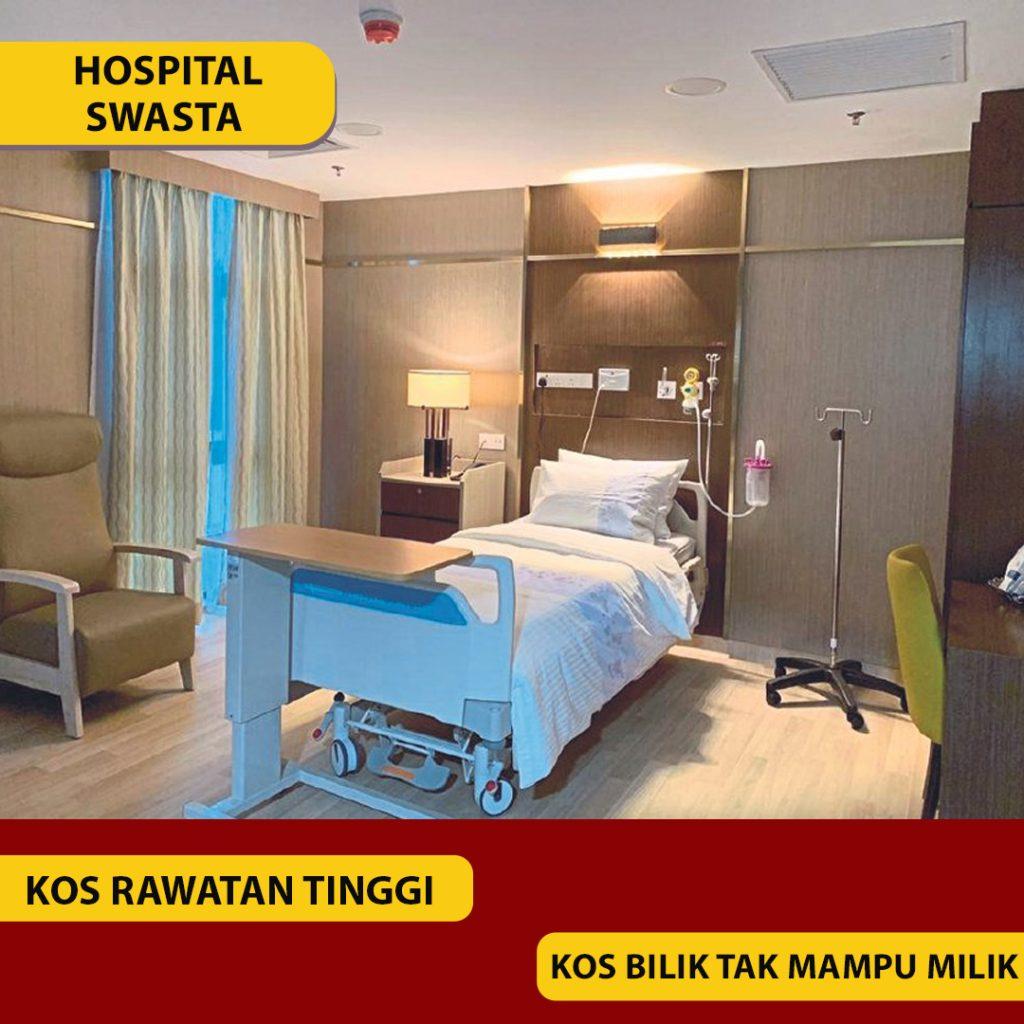 Nak masuk hospital swasta kos tinggi dan kalau nak masuk hospital kerajaan keadaan wad yang sesak